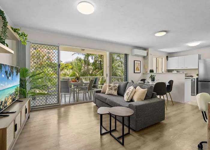 Een ingerichte kitchenette is uitgerust met een oven en een vaatwasser om zelf te koken. Old Burleigh Rd at Britannia Avenue bushalte is op circa 550 meter van Family 2Br 2Min Beach Pool Wi-Fi appartementen gelegen. The apartment provides guests with een zonneterras.